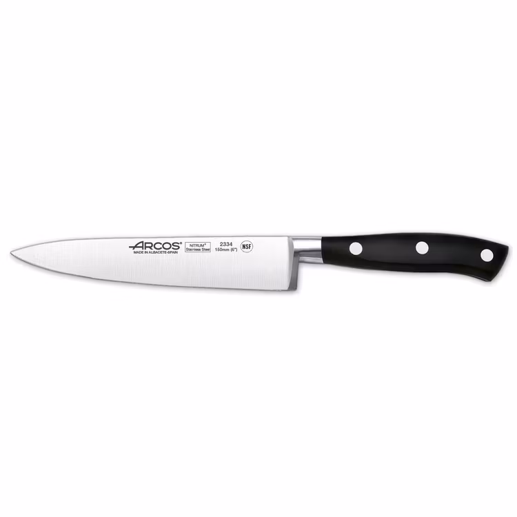 Knivarnas blad är tillverkat av Arcos egna NITRIUM®-stål som är en rostfri och härdat formel berikad med kväve för extra hårdhet och långvarig skärpa. De ergonomiska handtagen gjorda av polyoxymetylen (POM) och rostfria nitar är mycket motståndskraftig mot slag, lösningsmedel och temperaturer.