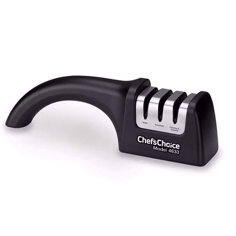 Knivslip 4633 från Chef'sChoice är en tvåstegsmodell som slipar knivar med asiatisk (15 grader) och europeisk (20 grader) vinkel samt även vågtandade knivar