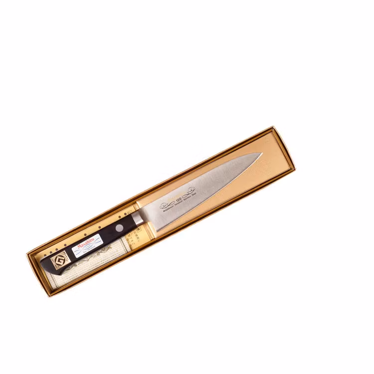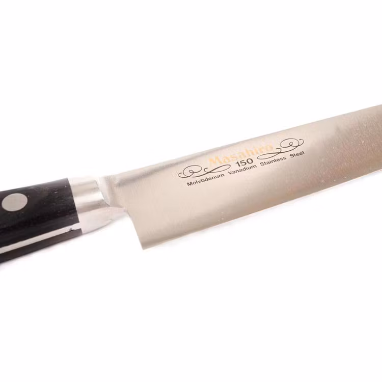 MV-Pro är Masahiros topp-serie tillverkad i klassisk Europeisk tradition. Knivarna är tillverkade av Masahiros egna patenterade och prisbelönade knivstål MBS-26 och är försedda med ett välavvägt bolster och ett kraftigt trähandtag. Hårdheten på stålet uppgår till 58-59 HRC.
