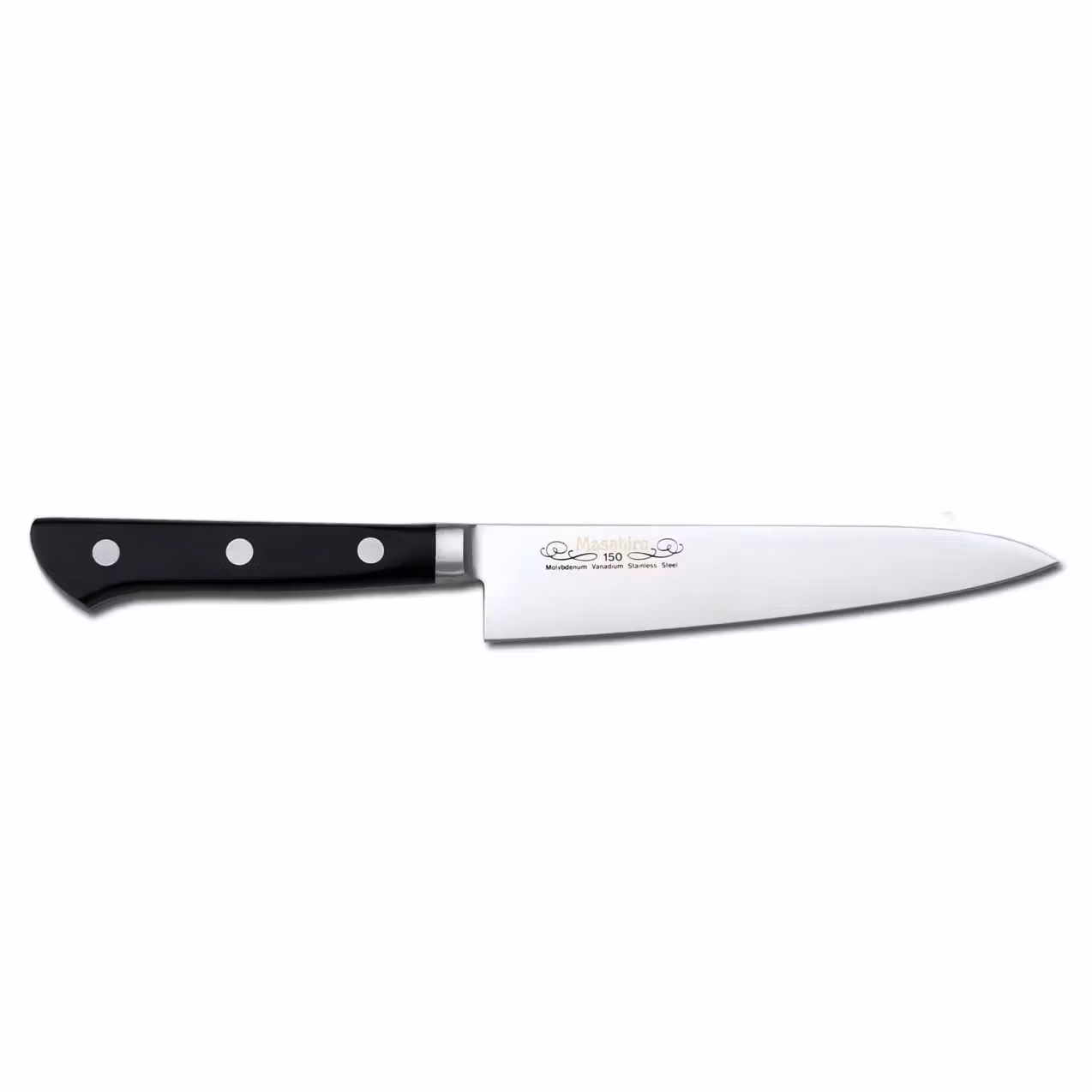 Masahiro MV-Pro skalkniv/allkniv kommer i två varianter 12 cm och 15 cm. Dessa grönsaksknivar används till precisionsarbeten som skalning, skivning och dekorering, men är också användbara som filekniv eller urbeningskniv.