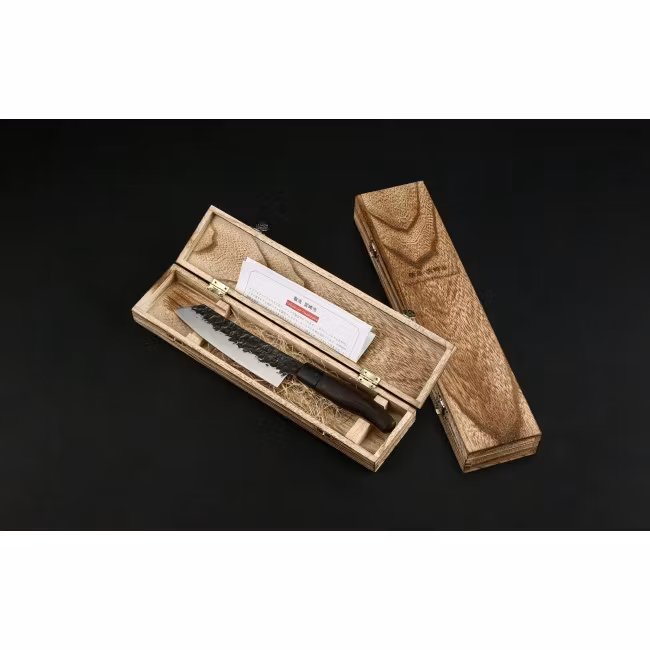 Denna kniv har en tanto-profil spets som ger kniven en unik och iögonfallande estetik. Kniven är en allsidig kökskniv som kan användas för att hugga, skära, skiva och tärna.