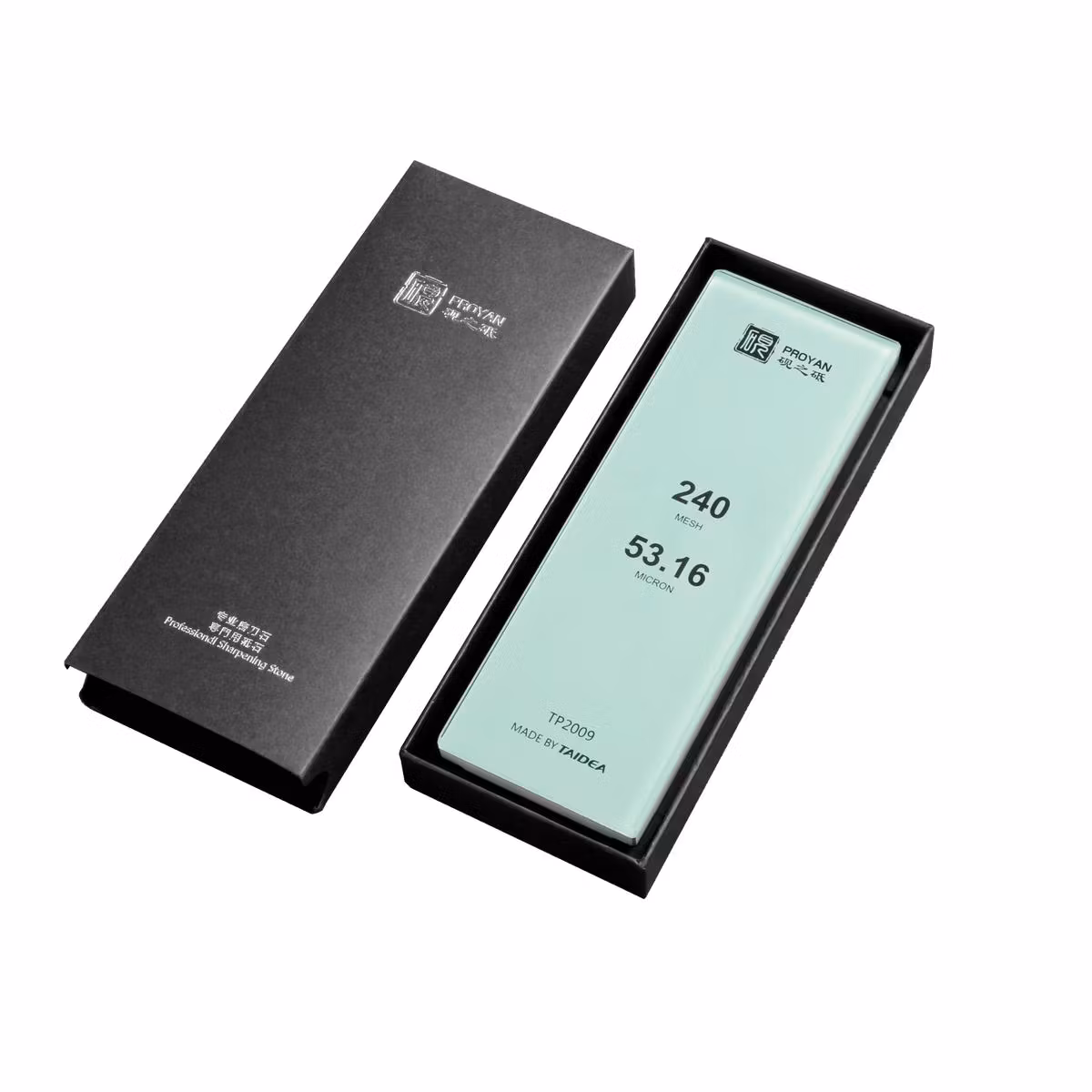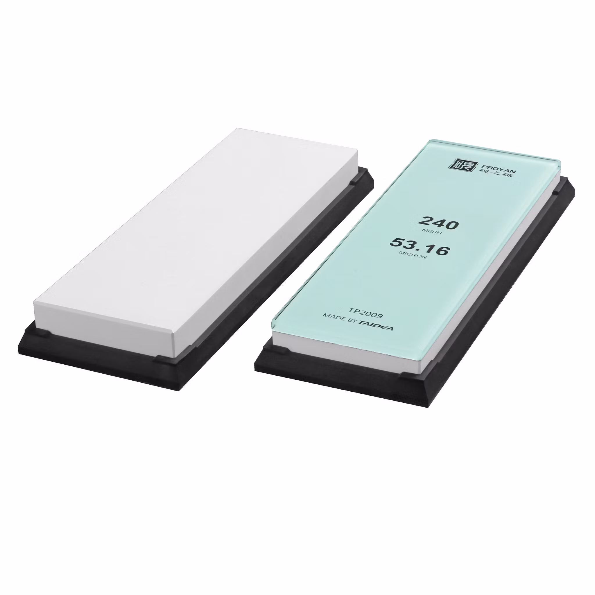 Proyan Glass Stones är en serie professionella och extra hårda keramiska slipstenar av vit korund med glasbotten. Stenarna är vad vi kallar "Splash & Go" som betyder att de skall användas med vatten eller olja, men att de inte behöver dränkas i vatten innan slipning som andra keramiska slipstenar.